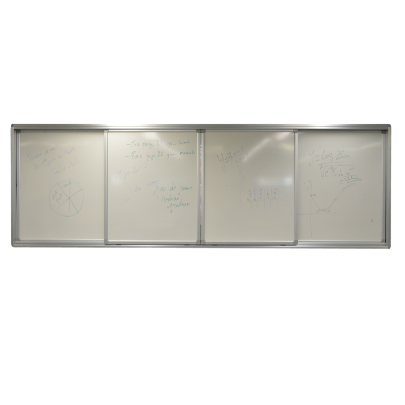 Araboard 4 est un ensemble mural tableaux blancs 4 volets (2 coulissants).