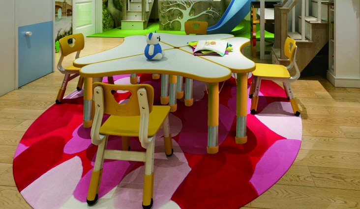 JUK 019 est une table modulable réglable en hauteur permettant aux enfants de la maternelle d’exprimer pleinement leur créativité.