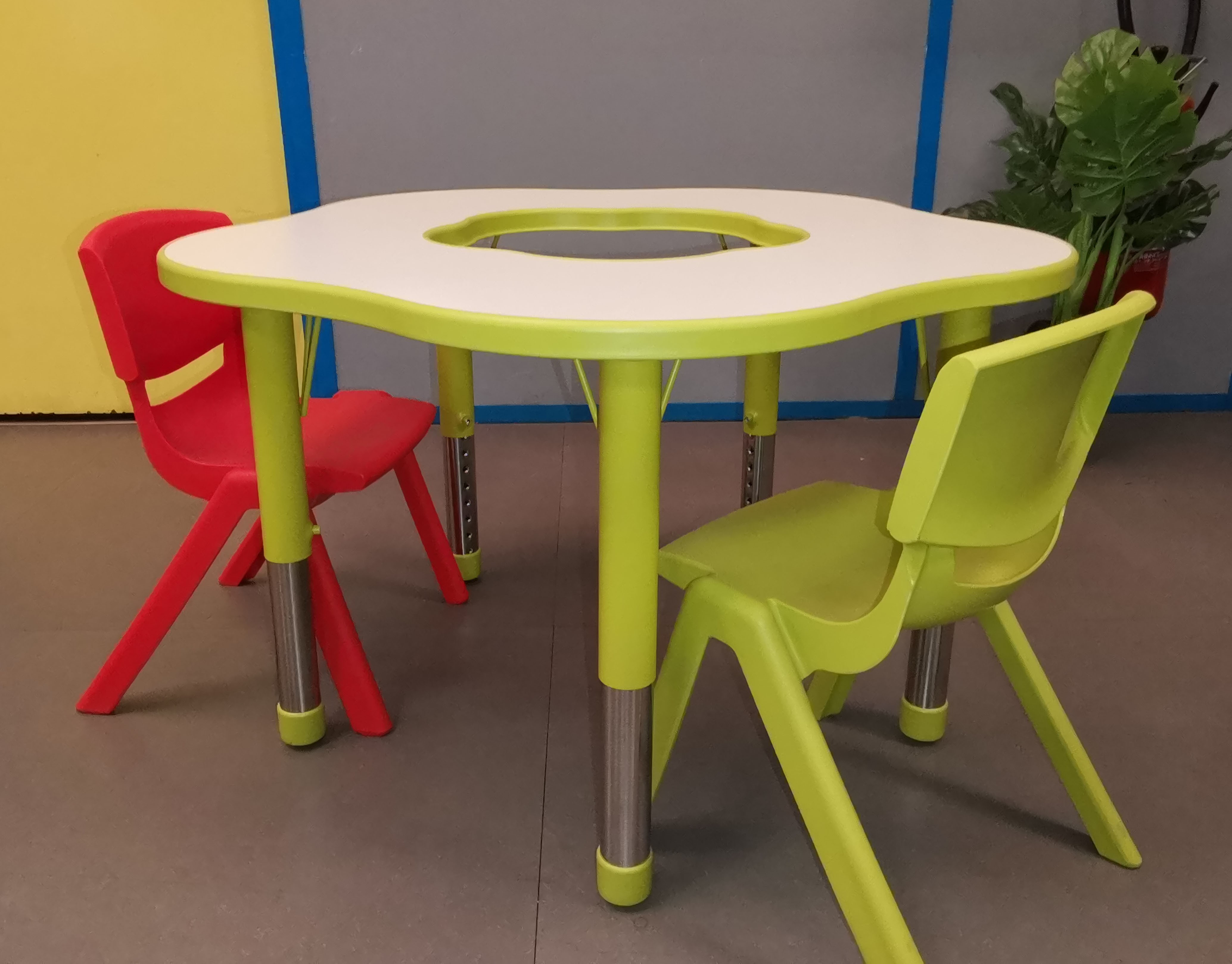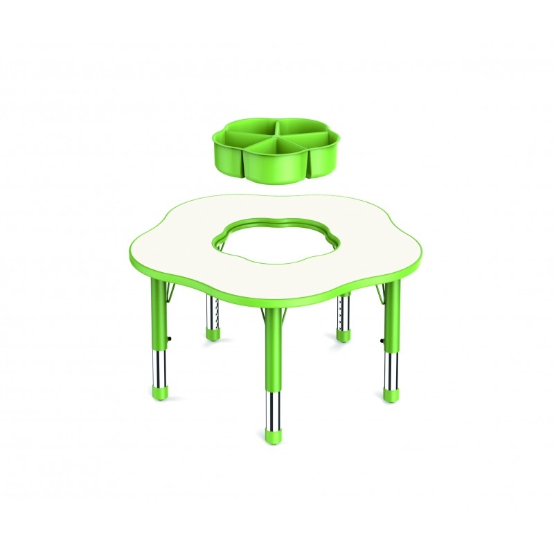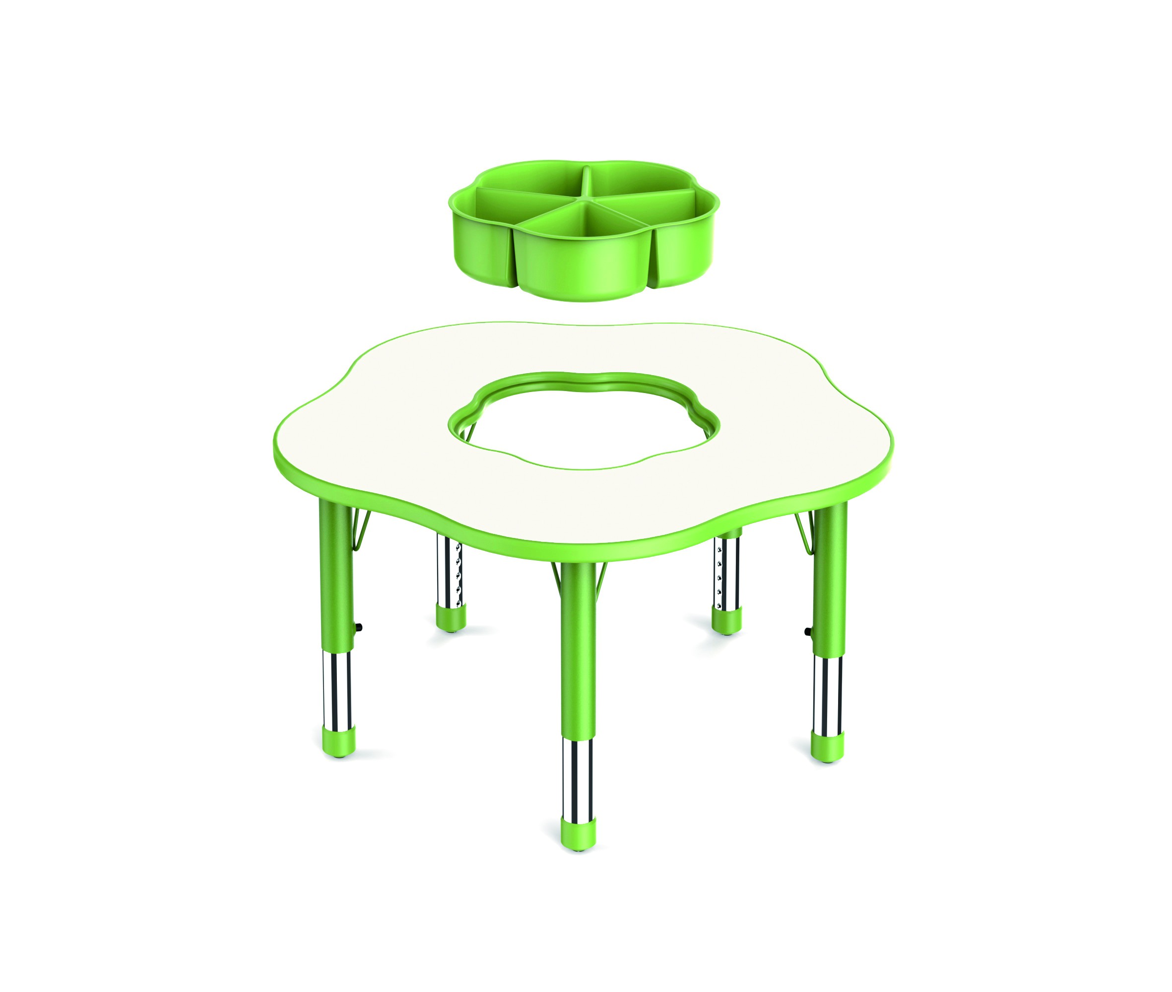 JUK 073 est une table modulable accompagnée de son bac de rangement permettant aux enfants de la maternelle d’exprimer pleinement leur créativité.