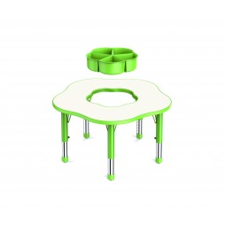 - Au centre de la table, se trouve un bac amovible pour le rangement de jouets.