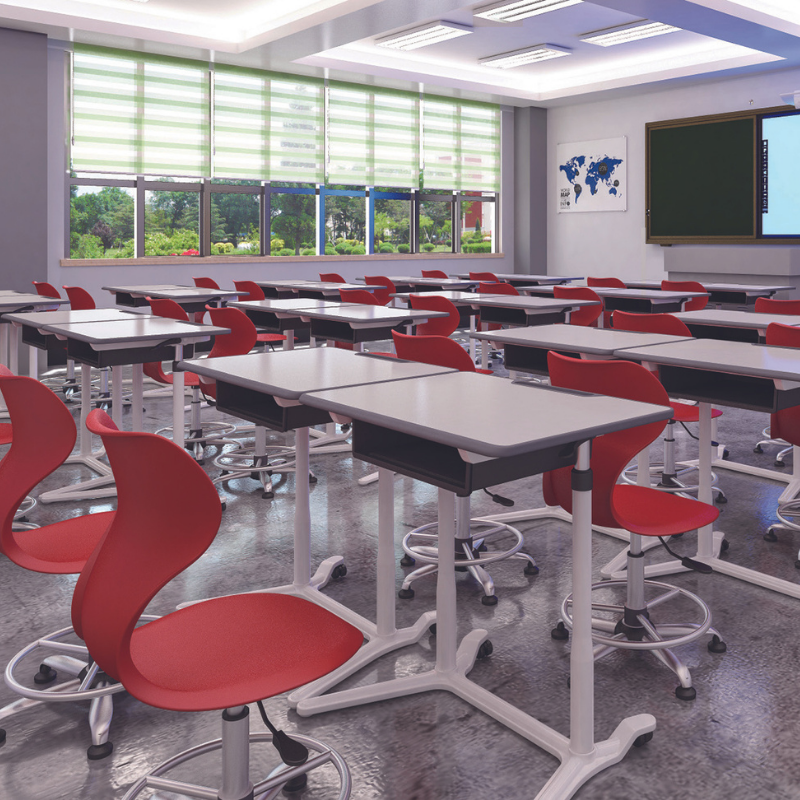 Le réglage de la hauteur se fait manuellement afin de s’adapter aux différentes tailles des utilisateurs et à tout type d’enseignement pédagogique.